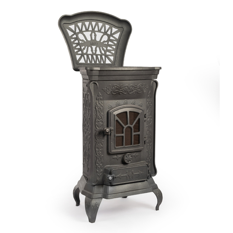 Étape. Cheminée autoportante à motif rétro en fonte pour la cuisson au bois