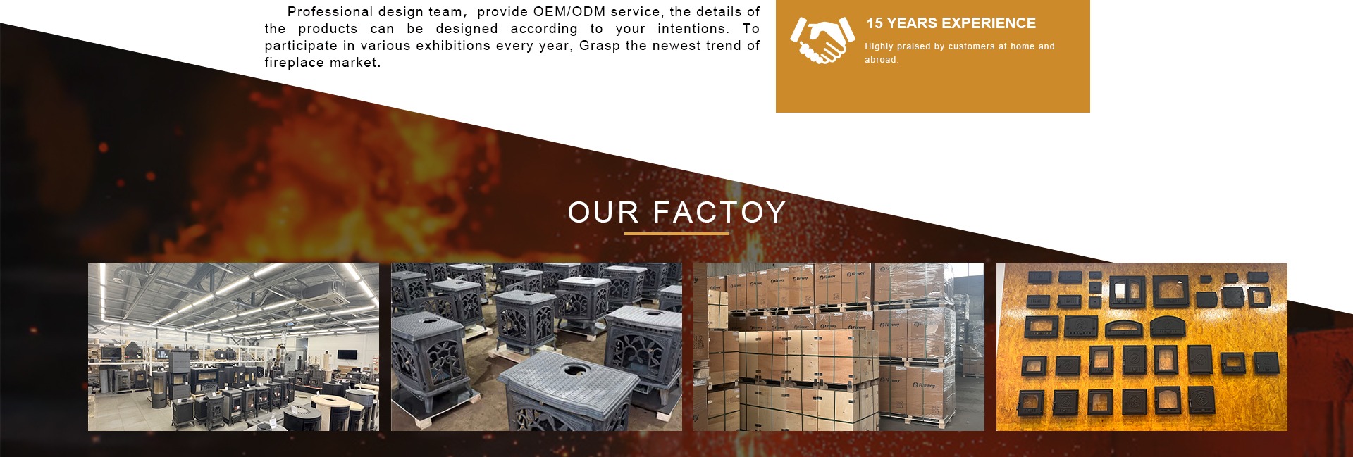 Produk utama: Kompor besi cor, pintu perapian, kompor Sauna, kompor masak, masukkan perapian