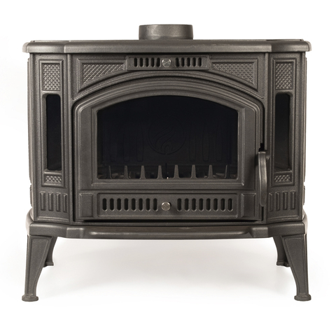 Fogão a Lenha Moderno de Ferro Fundido Ecoeficiente. Lareira Independente para Aquecimento Interno.